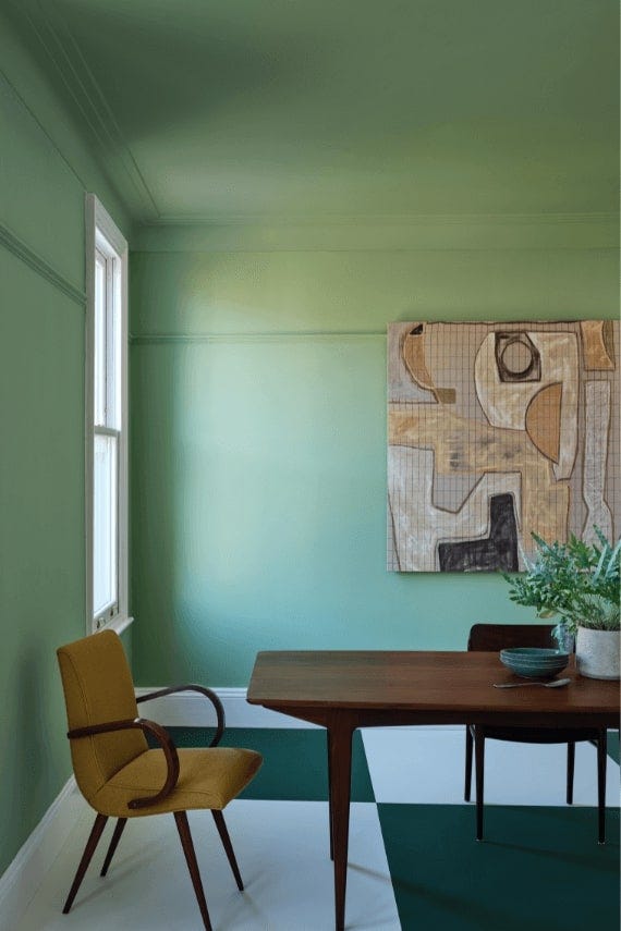 Whirlybird ist ein heiterer Grünton und inspiriert von den Flugsamen, die junge Gärtnerinnen und Naturfans gleichermaßen lieben. Besonders lebendig wirkt es im Morgenlicht, harmonisch ergänzt wird es am besten von Beverly und James White.